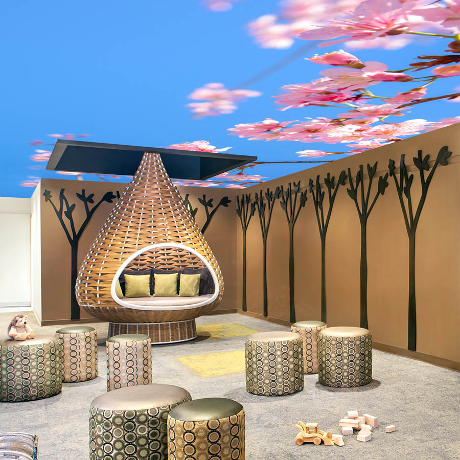 یکی از جالب‌ترین کاربردهای آسمان مجازی، استفاده در بیمارستان‌ها و کلینیک‌هاست. نگاه به سقف با طرح آسمان و نورپردازی ملایم، استرس بیماران و همراهان را کاهش داده و به آرامش آن‌ها کمک می‌کند.
