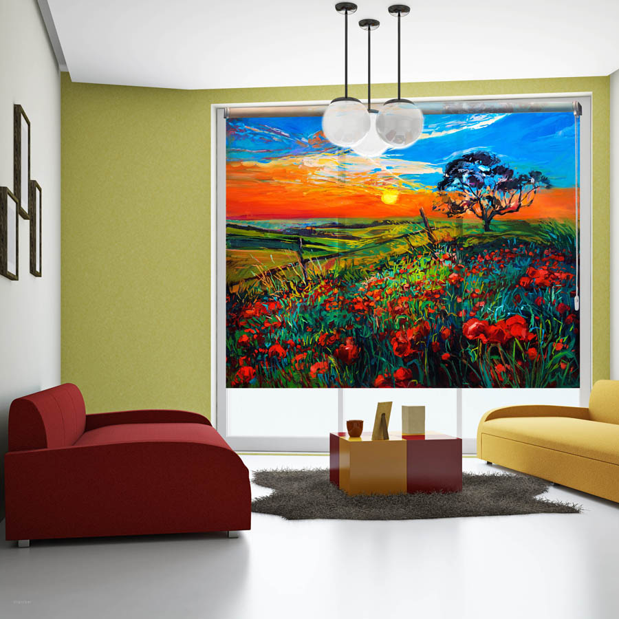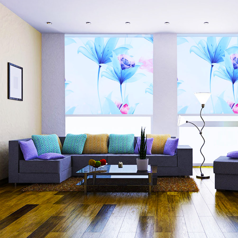- منازل: پرده شید چاپی در اتاق نشیمن و پذیرایی جلوهای مدرن و متفاوت ایجاد میکند.